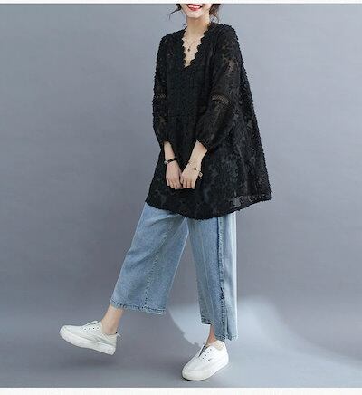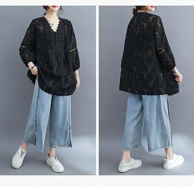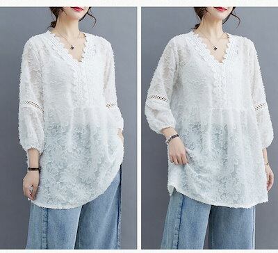 チュニック 大人可愛い 春 夏 チュニック ブラウス 刺? 森ガール レディース 刺? レースtシャツ 七分袖 ブラウス vネック 大人可愛い 透け感 カットソー 夏 ナチュラル ふんわり 柔らかい