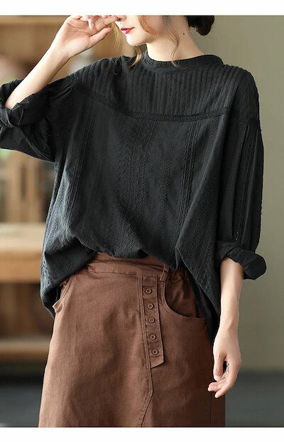 綿100% カットソー レディース 春夏 Tシャツ コットン トップス 長袖 ブラウス 薄手 チュニック コットン プルオーバー 刺繍 ゆったり レース 無地 切り替え 大人可愛い 花柄 白 黒 きれ
