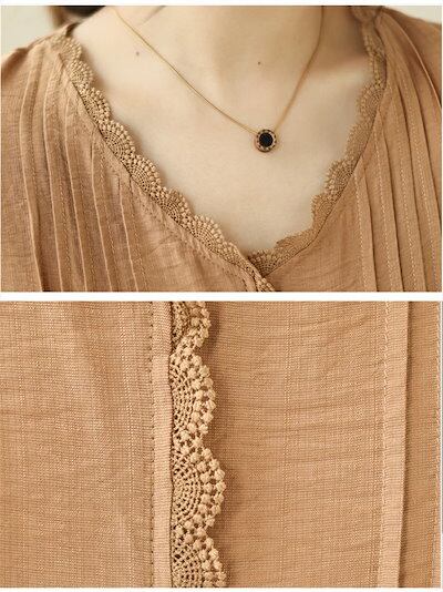 ブラウス レディース トップス 綿麻風 ブラウス 半袖 Vネック レース チュニック ブラウス プルオーバー 大きいサイズ ゆったり 体型カバー tシャツ 夏 きれいめ 無地 ナチュラル風 春夏秋 大