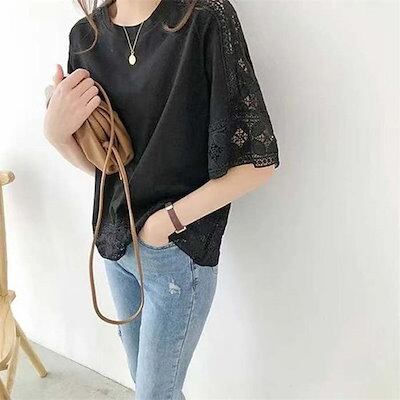 カットソー Tシャツ プルオーバー 半袖 透かし編み 夏 秋 春 トップス tシャツ レディース レース 透け感 カットソー ゆったり ラウンド tシャツ 綿 カジュアル おしゃれ シンプル ゆ