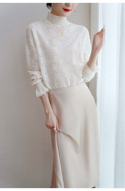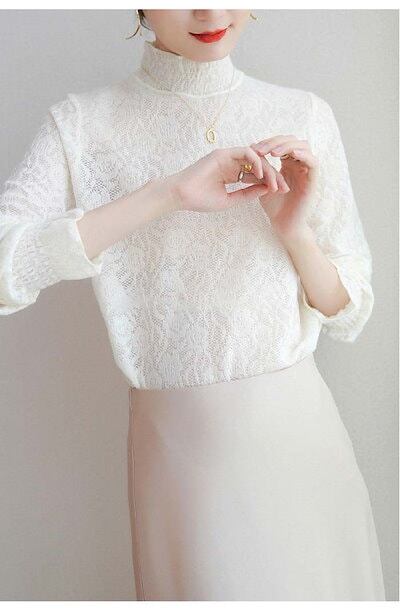 レース ブラウス レディーストップス Tシャツ 長袖 総レース 花柄 レースtシャツ インナー ハイネック フレア袖 春 秋 通勤 透け感 セクシー おしゃれ 着回し 重ね着 通勤 春 着痩せ フェミ