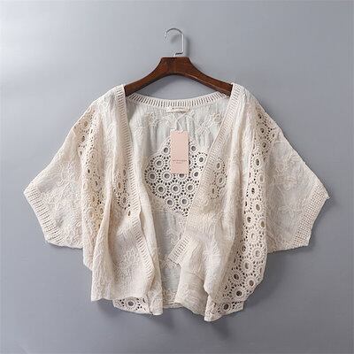 カーディガン レディース 薄手 夏 透かし編み 可愛い レース カーディガン ショート丈 春夏 ドルマンスリーブ きれいめ コットン 羽織り UV 紫外線対策 ゆったり トップス 重ね着 はおり 半袖