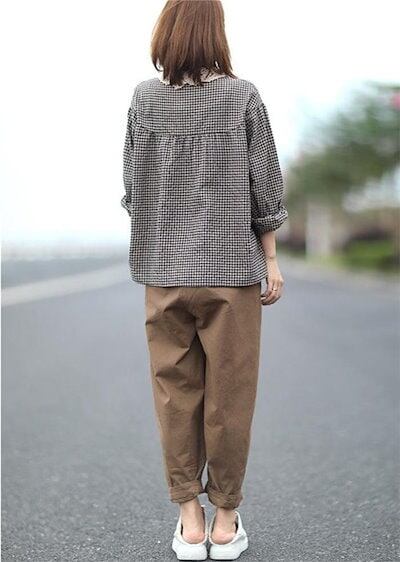 レース丸襟 シャツブラウス かわいい レディース 春秋 シャツ ブラウス 長袖 トップス 綿混 カジュアル 春トップス 秋トップス チェック 切り替え ギャザー ボタン 大きいサイズ 体型カバー 通勤