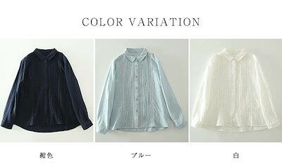 コットン シャツブラウス レディース ガーゼ シャツ 長袖 トップス レース ピンタック ダブルガーゼ カジュアル 2重ガーゼ 大きいサイズ ゆったり 体型カバー 通勤 秋 冬 春 シンプル 上品 着