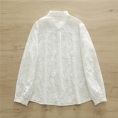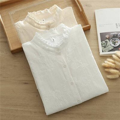 フリル襟 シャツ ブラウス レディース 長袖 綿 秋 冬 春 花柄 刺繍 レース シャツブラウス 長袖シャツ トップス 大きいサイズ コットン フォーマル カジュアル ナチュラル 通勤 オフィス ビジ