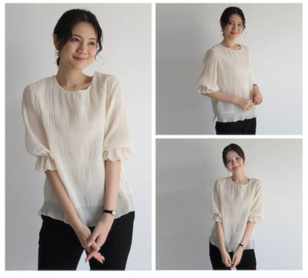 ブラウス レディース 夏 春服 トップス シャツ 全3色 チュニック 半袖 フリル袖 スタンドカラー シャーリングギャザー 無地 おしゃれ きれいめ ギャザーブラウス パフスリープシャツ