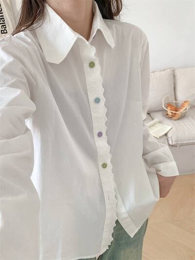 シャツ レディース 秋 冬 長袖 春秋 無地 フリル トップス コットン レディーストップス シャツブラウス スタンドカラー 長袖シャツ 羽織り 体型カバー シャツジャケット 切り替え 厚手 通勤 シ