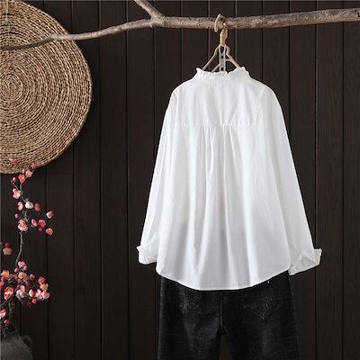 フリル襟 シャツ ブラウス 長袖 立ち襟 ピンタック シャツブラウス レディース トップス 羽織り 春 秋 フォーマル 大人 可愛い ファッション おしゃれ きれいめ ゆったり 重ね着 体型カバー オ