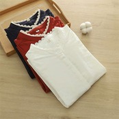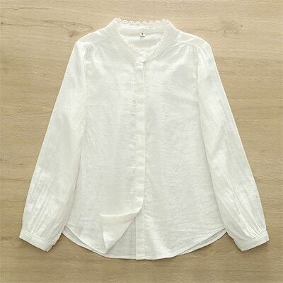 フリル襟 ガーゼ シャツ レディース 綿 長袖 春秋 バンドカラー コットン 綿シャツ 秋冬 トップス ダブルガーゼシャツ 2重ガーゼ ガーゼシャツ レディースシャツ レディーストップス シャツブラ