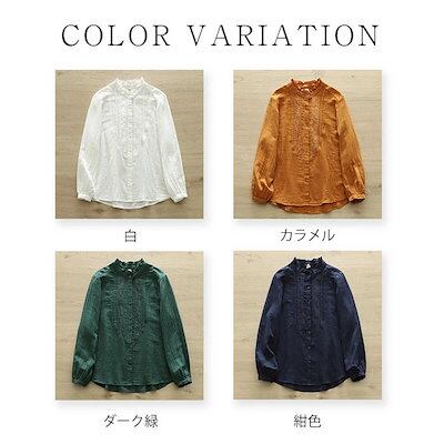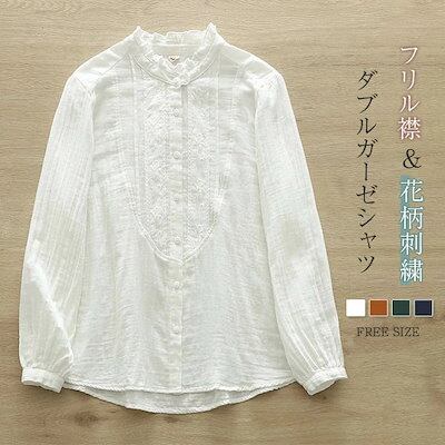 フリル襟 ガーゼ シャツ ダブルガーゼ 綿 秋 春 花柄 刺繍 シャツブラウス レディース ブラウス 長袖 ガーゼシャツ トップス ガーゼコットン カジュアル ナチュラル 無地 2重ガーゼ 大きいサイ