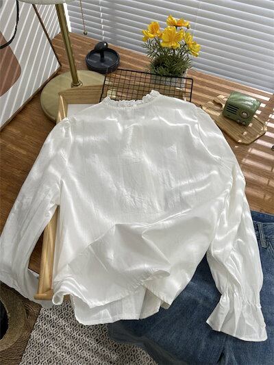 レース襟 シャツ レディース 長袖シャツ 綿 柔らかい シャツブラウス トップス フリル 襟 レース 春 秋 冬 シンプル 大人 おしゃれ 体型カバー 大人可愛い ピンタック 花柄 刺繍 重ね着 スー