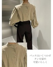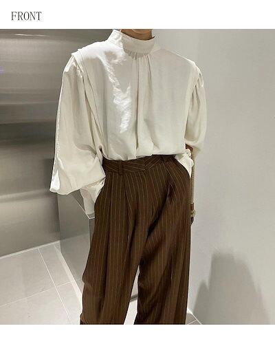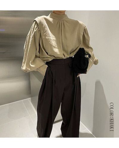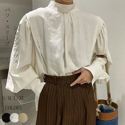 パフスリーブ シャツ ブラウス レディース ファッション 春夏 シャツブラウス 長袖 立ち襟 袖ギャザー 長袖シャツ トップス ボタン留め 肩タック ハイウエスト バルーン袖 フレンチ フリル バル