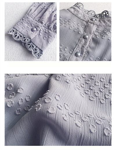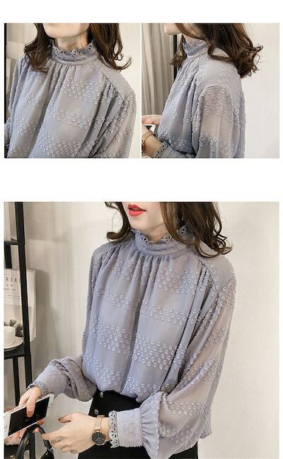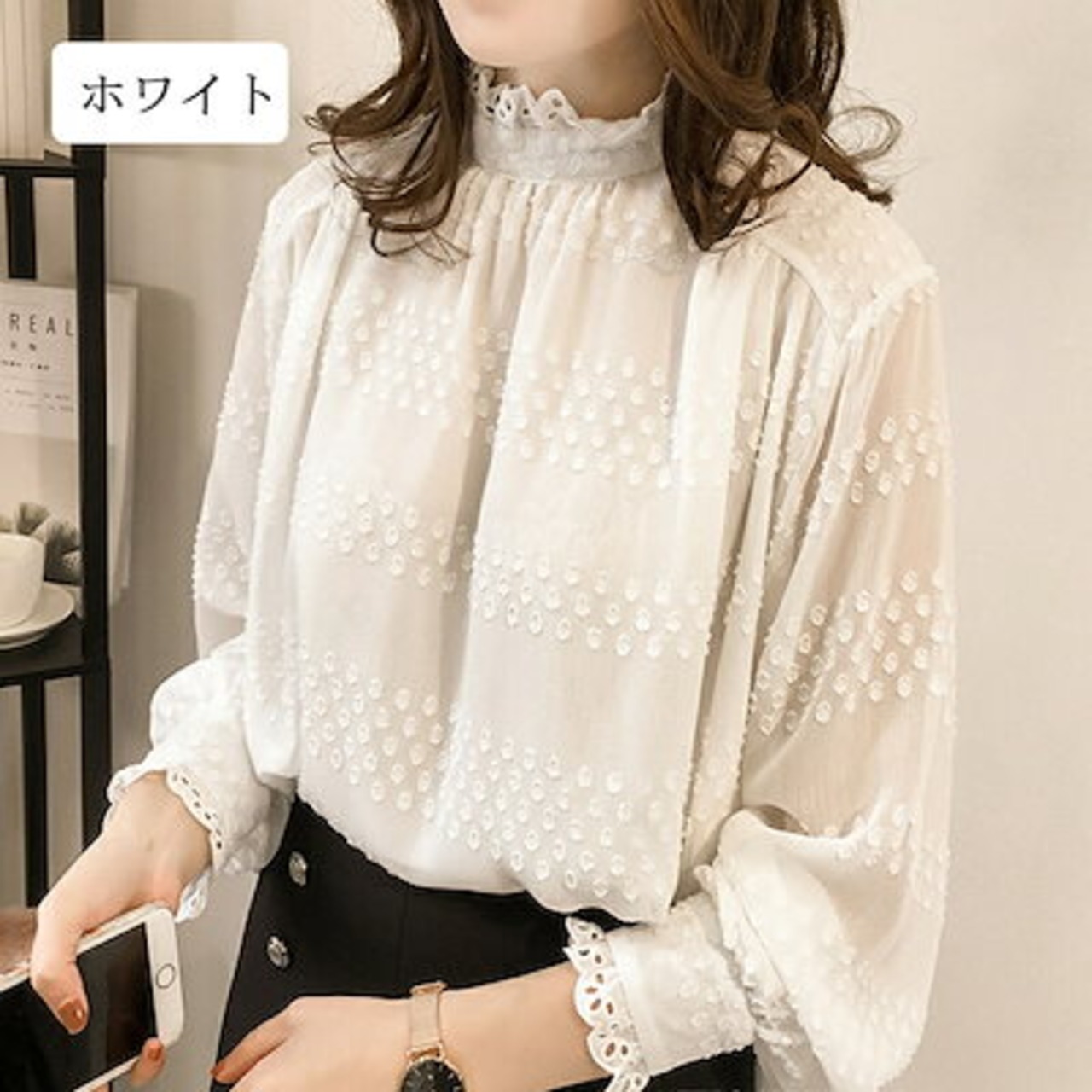 ぽわん袖 シャツ ブラウス レディース 長袖 秋物 シャツブラウス 立ち襟 ハイネック プチハイネック スタンドカラー ノーカラー 上品 バルーン袖 フリル ゆったり 体型カバー 春 フォーマル ト