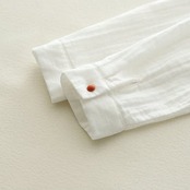 ブラウス シャツ 長袖 レディース シャツブラウス 春 夏 ブラウス フリル 立ち襟 白シャツ おしゃれ 長袖シャツ トップス 綿シャツ 綿 コットン ガーゼ 2重ガーゼ 無地 ボタン 赤い釦 通勤
