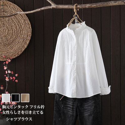 シャツ 長袖 レディース シャツブラウス 春 夏ブラウス フリル 立ち襟 白シャツ おしゃれ 長袖シャツ トップス 綿シャツ 綿 無地 通勤 ビジネス 大きいサイズ 折り襟 通勤シャツ 前開き フリル