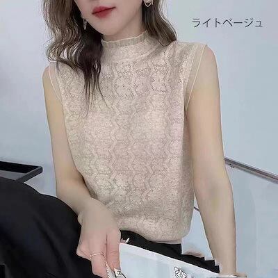 プチハイネック カットソー レディース tシャツ トップス ノースリーブ チュールトップス ニット シアー 透け感 フリル ハイネックインナー ブラウス きれいめ オシャレ レイヤード シワ隠し 黒