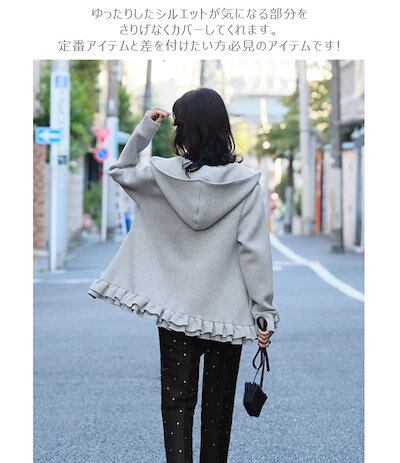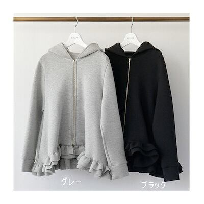 フリルパーカー パーカー レディース 秋冬トップス アウター ジップアップパーカー 大きいサイズ フリルパーカー 無地 ジップアップ 可愛い フリル裾 スプリングコート おしゃれ フレアパーカー 体型