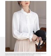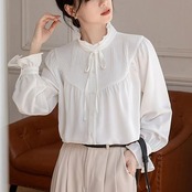 ブラウス フリル襟 シャツ レディース 長袖 シフォン シャツブラウス フロントタック スタンダードカラー 大きいサイズ トップス ゆったり カジュアル キレイめ ナチュラル 大人可愛い 着?せ ベー
