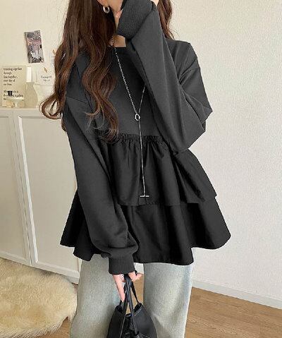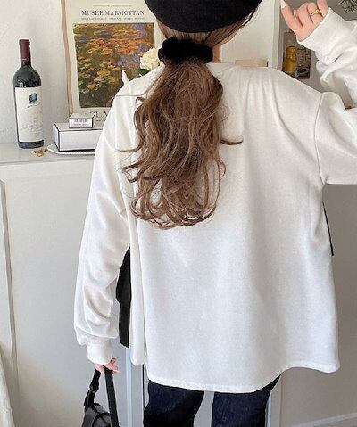 Tシャツ レディース 長袖 ドッキング カットソー プルオーバー ブラスス 異素材 切り替え トップス フリル 春 秋 ゆったり 大人フェミニン おすすめ おしゃれ 体型カバー レイヤード ドッキング