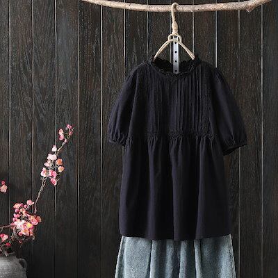 ブラウス レディース シャツ 春 夏 秋 無地 綿 トップス 半袖 白シャツ コットン フリル襟 ボリューム袖 フェミニン 着回し シンプル おしゃれ 大人 カジュアル こなれ感 春 夏 涼しい 大人