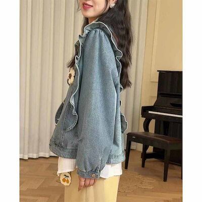 コーデに役立つ!デニムジャケット レディース フリルデニムジャケットブラウス 春アウター 韓国ファッション