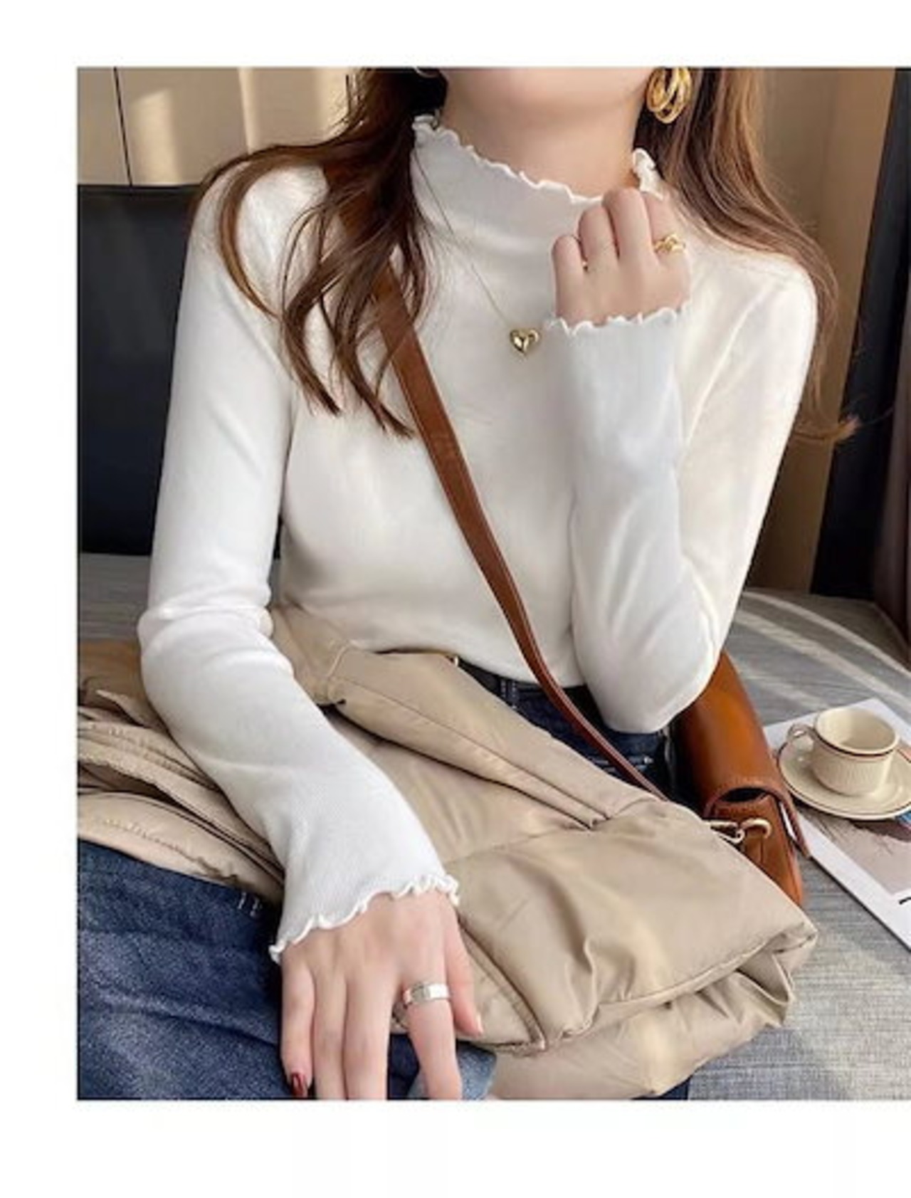 防寒 可愛い インナー 長そで プルオーバー 冬 黒 カットソー 長袖 リブニット 春 ベーシック タイト インナーニット ストレッチ レディース トップス フリル 秋 ハイネック プチハイネック 秋