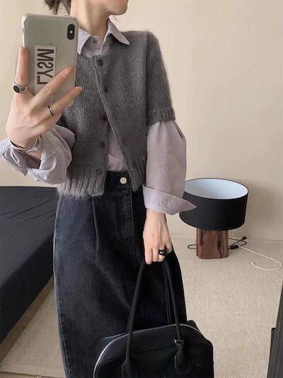 ブラウス レトロなグレーパープルのコーデュロイシャツレディース春秋韓国版ゆったりカジュアルインナーにシャツを重ね着 ブラウス