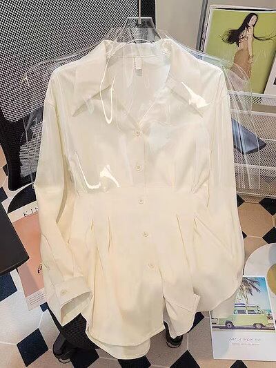 ブラウス スリムシャツレディース春服2025新型ウエストダウンスリムスーツフレンチシックでユニークなトップスデザイン ブラウス