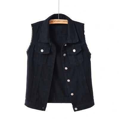 テーラードジャケット春アウター 韓国人気 マルチカラーデニムベストショート丈スレンダー細身フリルノースリーブ破れカーディガン デニム レディース トップス アウター