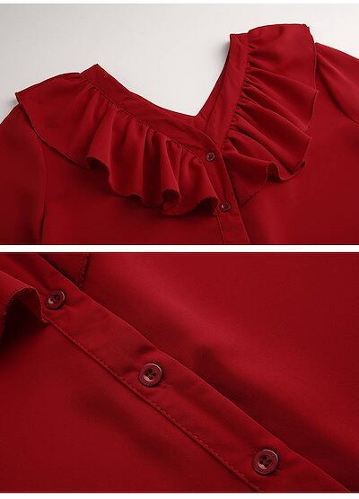 春新品シャツトップスパフスリーブフリルシャツシフォン韓国ファッション可愛い長袖 Vネック無地レディースゆったり