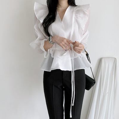 ブラウス韓国ins2024春の新作気質妖精日焼け止めシャツフリル薄手シャツレディースウエストトップ