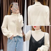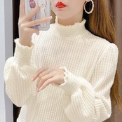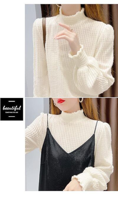 「DEX」春 レース ブラウス メッシュ シアー トップス フリル 薄手/裏起毛 長袖 ハイネック チュール タートルネック 秋インナー ベーシック レディース ニット シャツ メガ割
