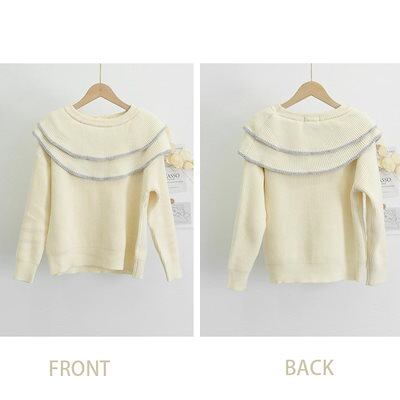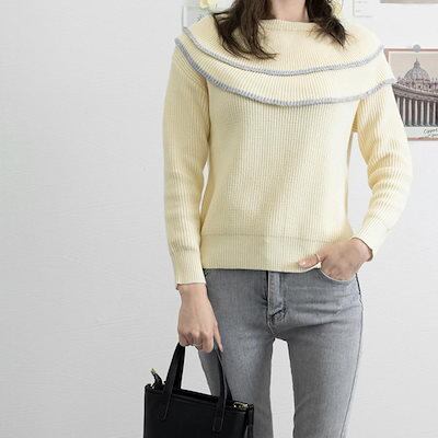 2025新作 韓国版 人気ニット フリル ニットトップス レディース 長袖 ニットソー 無地 ニットセーター 韓国風 2way オフショルダー プルオーバー orange