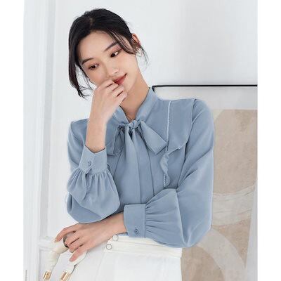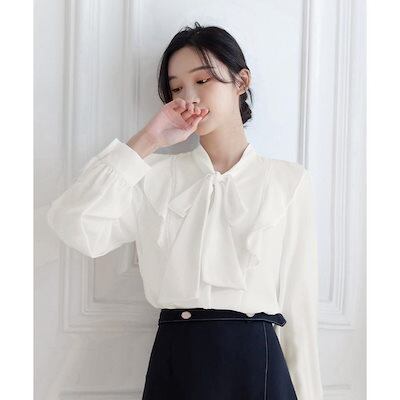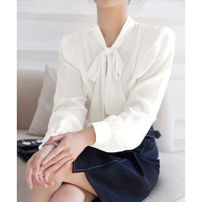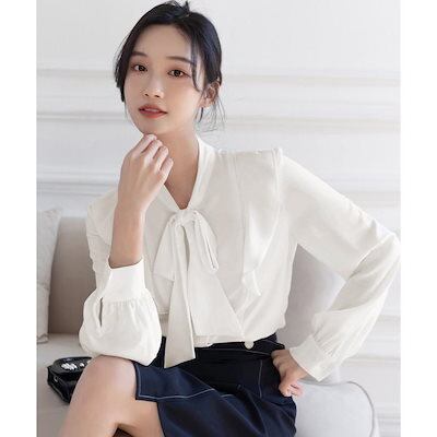 【本日限定】気質 韓国ファッション 長袖シャツ リボンタイブラウスフリルシャツレディース