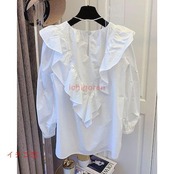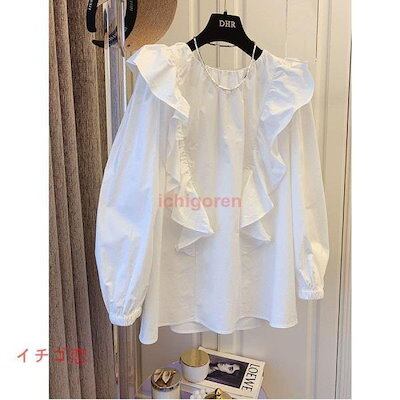 【新作入荷】気質 長袖シャツ ブラウス レディース 春夏 シフォン フリル クルーネック 長袖 韓国風 白シャツ トップス 大人 通勤 きれいめ カジュアル おしゃれ 30代 40代 50代
