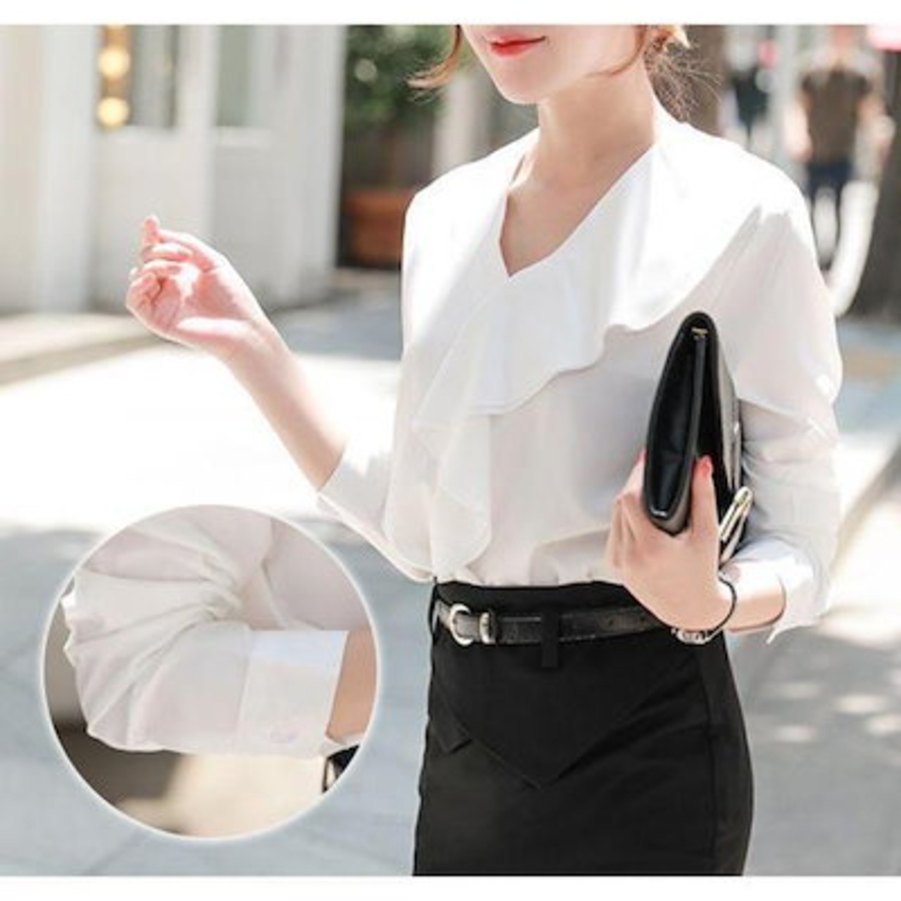 【新作入荷】気質 長袖シャツ ブラウス レディース フリルシャツ 長袖 白 ブラウスシャツ フリル シャツ ホワイト 長袖シャツ チュニック 大人 Yシャツ 春 夏
