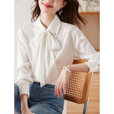 ブラウス 2025 春新作 フリルカラー サテンブラウス レディース トップス