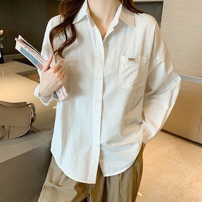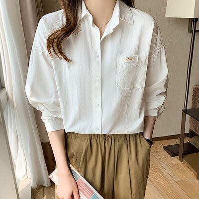 秋服 シアーシャツ 長袖 メリヤス 綿 白 シャツ女 性 長袖 上着 純綿 シャツ ブラウス シャツ レディース レディース オフィス