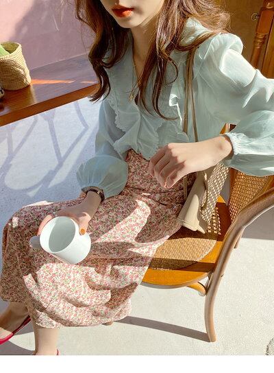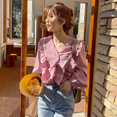シアーシャツブラウス シャツ レディース 可愛いシャツプリーツパフスリーブレディース長袖春おしゃれ韓国ファッションフレアブラウス シャツ レディース