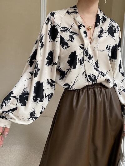 ブラウス シャツ レディース Vネック花柄 絣です ブラウス シャツ レディース レディース オフィス 長袖 上着ですポロシャツ 百掛け プリントシャツ着痩せシャツ 半袖 レディースブラウス シャツ