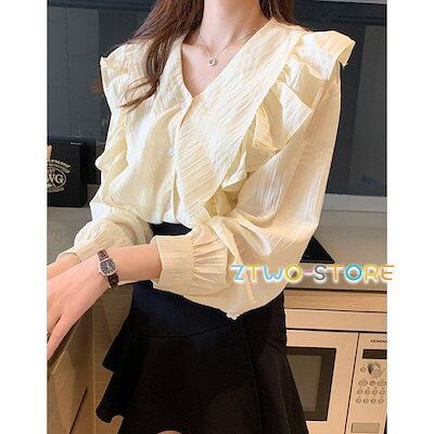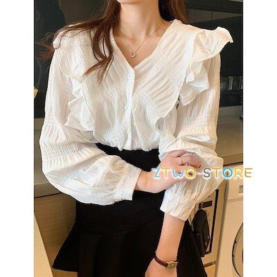 安い,フリルブラウス シャツ ブラウス レディース トップス 長袖 白 ラッフルフリルブラウス シャツブラウス オフィス 通勤服 お呼ばれ 韓国 ファッション