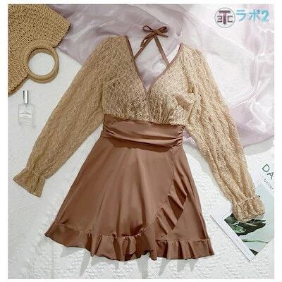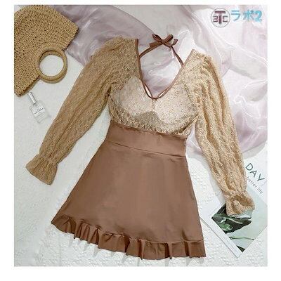 当店の新商品,水着 大きいサイズ レティース水着 2点セット ワンピース 水着 体型カバー レディース オールインワン ビキニ 可愛い ママ水着 みずぎ フリル ショートパ