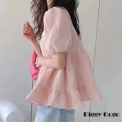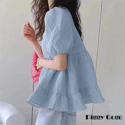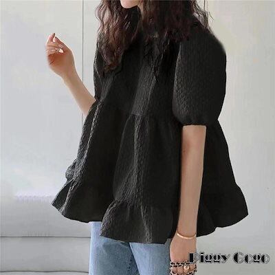 当店の新商品,Tシャツ レディース 半袖 春夏 トップス カットソー 切替 体型カバー フリル ハーフスリーブ カジュアル ブラウン ゆったり