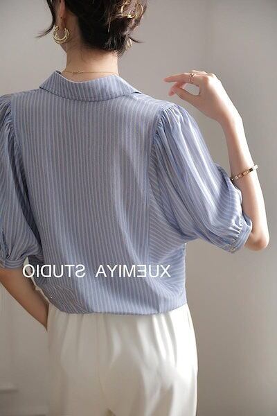 2025 春夏シャツ 服 半袖シャツ レディース ストライプのシャツ 通勤 ブラウス ゆったり 着痩せ 気質 百掛けトップス ブラウス 韓国ファッション