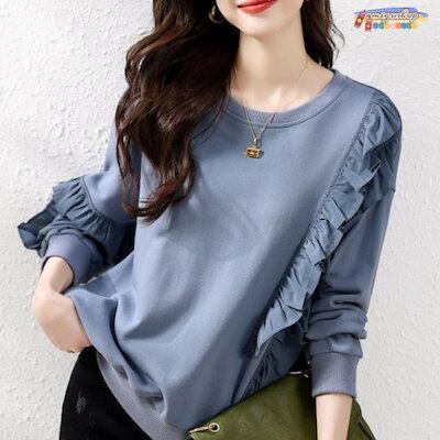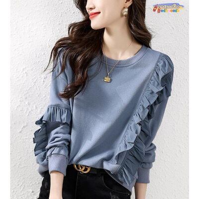 人気の新作 ブラウス レディース 長袖 おしゃれ かわいい フードなし トップス ボトムス フリル ラウンドネック