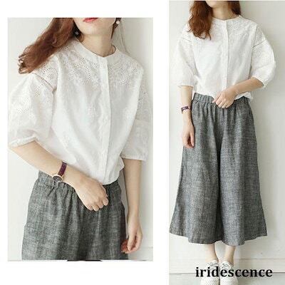 2枚購入で 2oo円FF!迅速な出荷ブラウス レディース 白 シャツ ブラウスシャツ フリル エンボス ゆったり 刺繍 きれいめ 5分袖 半袖ブラウス トップス 半袖 白