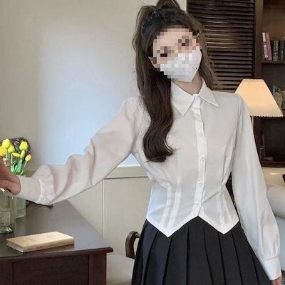 シアーシャツブラウスブラウスレディースフリルシースルーレディースファッションシフォンレーストップスタイブラウスノースリーブシャツメガ割シャツ春秋ニューデザインコーディネート長袖ブラウスデザイン感ウエス