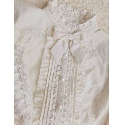 [cos衣料]24 今っぽシアーシャツ レディース 新作ロリータシャツ レディースブラウス レディース マトンガールのロリータ風脚フリルレースロリータ長袖ジャガードシャツ レディース和風