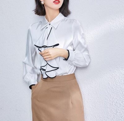 ブラウス シャツ フリル リボン風 フリルブラウス 胸元 フェミニン きれいめ おしゃれ レディース 長袖 大きいサイズ カジュアル 卒業式 卒園式 オフィス OL おしゃれ 薄手