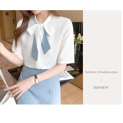 ブラウス レディース 40代 春夏新作 オシャレブラウス 白シフォンシャツ リボンネック 半袖トップス 大人 通勤OL ゆったり シャツ30代 50代